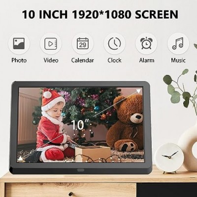 FamBrow 디지털 액자, 10인치, 1920 x 1080P HD IPS 화면을 갖춘 전자 액자, 원격 제어, 간편한 설정, 비디오/음악/사진/달력/시계, SD/USB 지원