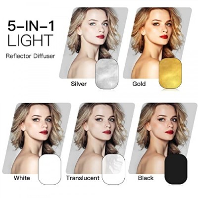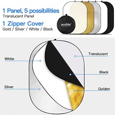 Godox 35x47 in/90x120cm Light Reflector Diffuser, 5-in-1 Portable Collapsible Round Multi Disc with Holder Clip & Bag for Studio Shooting,Video Location-Gold,Silver,White,Black,Translucent