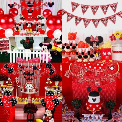 Miickey 테마 파티 장식 생일 파티 세트, BESTZY Miickey 풍선 레드 블랙 풍선 미키 1 생일 테마 파티 용품 테마 생일 파티 장식, 베이비 샤워 용품