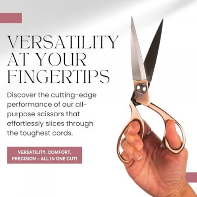 BOCHIKNOT Fabric Scissors Professional 8" - Sharp Scissors Rose Gold - Tailor Scissors - Rose Gold Scissors for Office - Ribbon Cutting Scissors Shears - Aesthetic Scissors for Arts, Craft, & Sewing