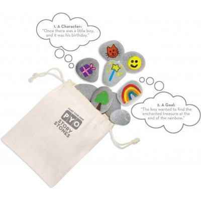 MindWare Paint Your Own Story Stones & Storytelling Game for Kids – DIY Kit Incldues 16 Stones, 12 Paints, 2 Brushes and Bag