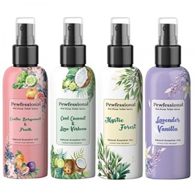 Pewfessional poop spray for Toilet, pre poo Toilet Odor eliminator, 4pack + 1Gift, 2.5 Oz travel size