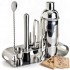 포함된 구성 요소: 병따개, 얼음 집게, 주류 푸어러 2개, 24온스 칵테일 셰이커, 양면 지거, 스테인리스 스틸 스탠드, 믹싱 스푼 및 머들러