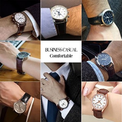 Nice Pies Genuine Calfskin Leather Watch Band,Alligator Grain Deployment Butterfly Buckle Replacement Strap for Men Women 18mm 20mm 22mm 24mm