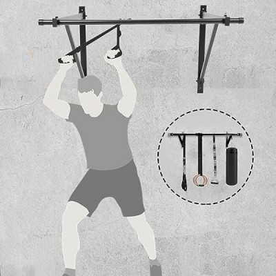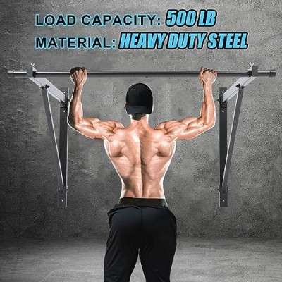 7BLACKSMITH 50'' Wall Mounted Chin Pull Up Bar Gym Workout Training Fitness Home Mount Heavy Duty 500lbs