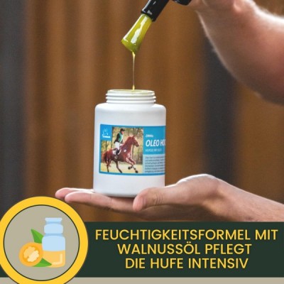 - 발굽 오일 말 - 독일산 Huffett I 새로운 말 관리 발굽 관리 I 브러시로 쉽게 부서지고 갈라지고 건조한 발굽에 바르기 쉬운 발굽 오일 고품질의 발굽 오일이 빠르게 흡수됩니다 I 활성 성분의 특별한 조합으로 발굽 경화제 발굽 뿔 재생 - 발굽 치료로 말 젤이 구부러짐 부상을 안전하게 보호하고 발굽을 탄력 있게 유지 통합 브러시가 있는 실용적인 통에 들어 있는 발굽 연고로 발굽 경화제가 모든 말 손질 가방에 들어 있음