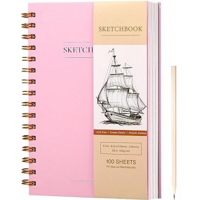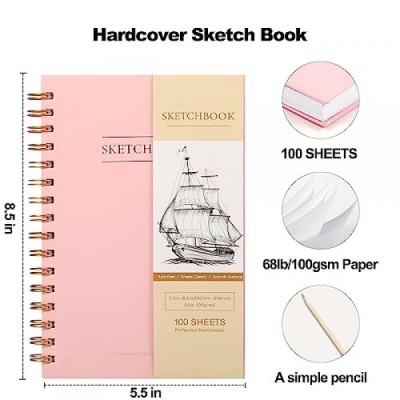 Yoment 5.5 x 8.5 Sketchbook for Drawing Small Spiral Bound Sketch Pad for Kids Hardcover Sketch Book(68lb/100gsm) Artist Drawing Blank Paper Notebook for Painting Sketching Pad with Pencil, Pink