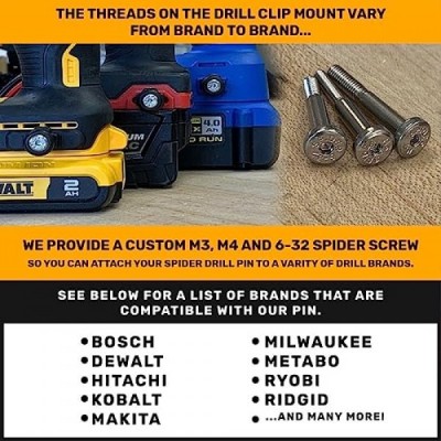 스파이더 도구 홀스터 - 드릴 핀 - 3개 팩 - 모든 브랜드 파워 드릴 및 드라이버 측면에 제공된 나사로 부착 - 스파이더 도구 홀스터 및 도구 도크와 쌍