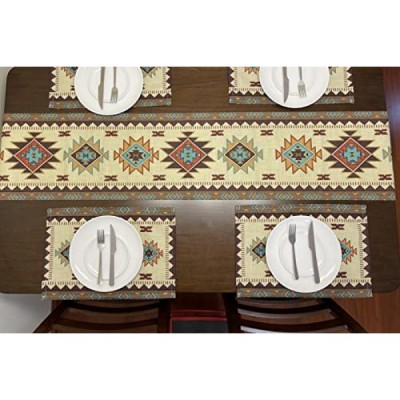 Set of 4 Placemats Southwest Geometric Rectangle 18 X 13 Inch Table Setting Decor for Garden Farmhouse Wedding Party Holiday Dinner Home Decoration Everyday Cotton Linen