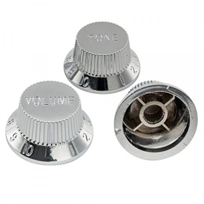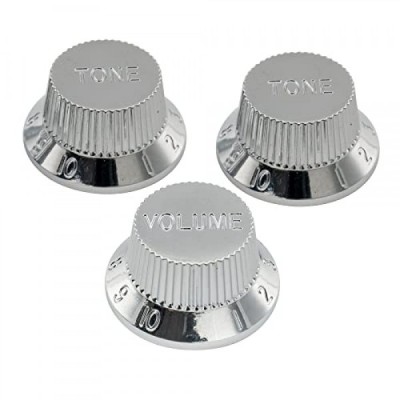 Musiclily Pro Inch Size 1 Volume 2 Tone Stratocaster Knobs Set for USA Made Strat Style Electric Guitar, Chrome