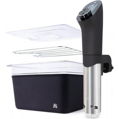 Greater Goods Pro Sous Vide 키트 - 1100와트, 강력하고 정밀한 Sous Vide 쿠커 및 프리미엄, Sous Vide 랙, 뚜껑 및 네오프렌 슬리브가 포함된 플라스틱 용기 | 세인트루이스에서 디