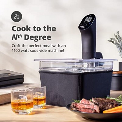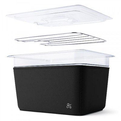 Greater Goods Pro Sous Vide Kit - An 1100 Watt, Powerful, Precise Sous Vide Cooker and Premium, Plastic Container with Sous Vide Rack, Lid, and Neoprene Sleeve | Designed in St. Louis
