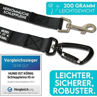 HUND IST KÖNIG® Schleppleine für Hunde - Lange Hundeleine 5m / 10m / 15m / 20m mit Griffpolster - Robuste Laufleine für Hunde mit Sicherheitskarabiner für erfolgreiches Hundetraining inkl. eBook Länge: 5m / Breite: