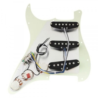 Musiclily Pro SE Pre-wired SSS Guitar Loaded Pickguard with Staggered Alnico 5 Single Coil Pickups for Squier Strat Style Electric Guitar, Mint Green 3Ply