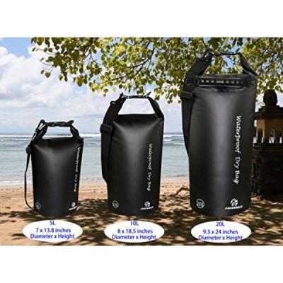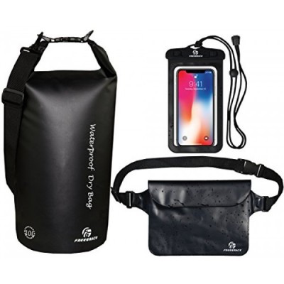 Freegrace Waterproof Dry Bags Set Of 3 Dry Bag With 2 Zip Lock Seals & Detachable Shoulder Strap, Waist Pouch & Phone Case - Can Be Submerged Into Water - For Swimming (Black, 5L)