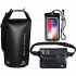 Freegrace 방수 드라이백 지퍼 잠금 씰 2개, 탈부착 가능한 어깨 스트랩, 허리 파우치 및 휴대폰 케이스가 포함된 드라이백 3개 세트 - 물에 담글 수 있음 - 수영용(검은색,