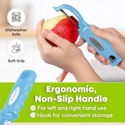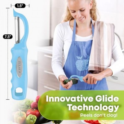 흠집 제거 장치가 내장된 Zulay 프리미엄 회전식 야채 필러 - 스테인레스 스틸 감자 필러 - 편안한 그립감을 갖춘 야채 필러 - 사과, 당근, 오이, 감자용 식품 필러 - 블루