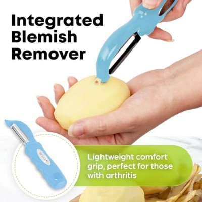 Zulay Premium Swivel Vegetable Peeler With Built In Blemish Remover - Stainless Steel Potato Peeler - Veggie Peeler with Comfortable Grip - Food Peeler for Apples, Carrots, Cucumbers, Potatoes - Blue