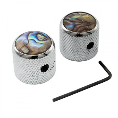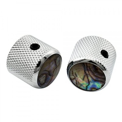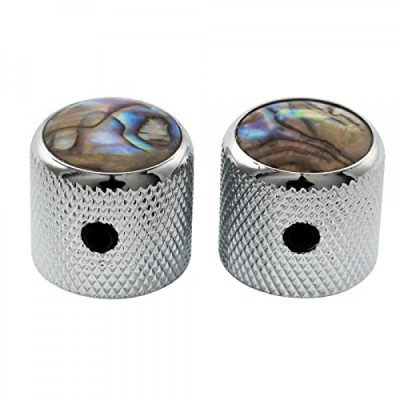 Musiclily Pro 1/4 Inch Steel Abalone Top Dome Knobs with Set Screw Universal Fitting Control Knobs for Electric Guitar or Bass, Chrome (Set of 2)