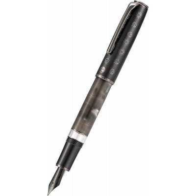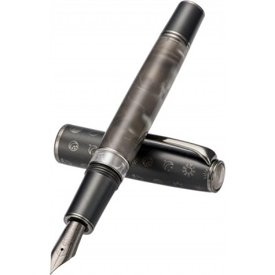 Hongdian N7 Grau Harz Kolben Füllfederhalter, Iridium Feine Spitze Klassischer Stift Robbit auf Oberseite, Glatt Schreibstift mit Metallbox Gray Feine Spitze