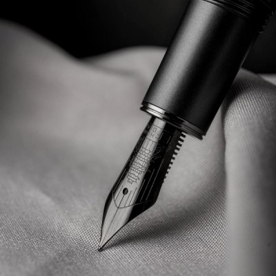 Hongdian N7 그레이 수지 피스톤 만년필, 상단에 이리듐 파인 포인트 클래식 펜 Robbit, 금속 상자 그레이 파인 포인트가 있는 부드러운 필기구