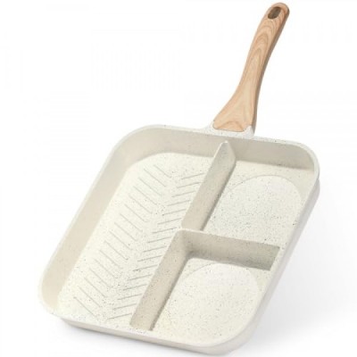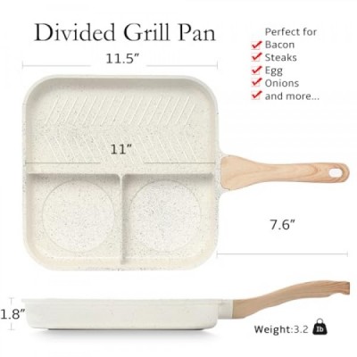 ESLITE LIFE 스토브 탑용 붙지 않는 분할 조식 그릴 팬, 실내 요리 및 야외 그릴링을 위한 11인치 3-In-1 다용도 사각형 대형 그릴 프라이팬 팬, PFOA 없음, 크림