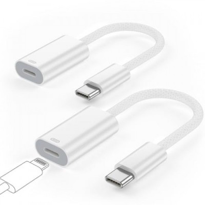 Lightning-USB C 충전 어댑터용, Lightning 암 커넥터용 2팩 USB C Male iPhone 15 Pro/Max iPad Pro Air/iPad 10 및 기타 유형 C 장치용 어댑터 PD 고속 충전