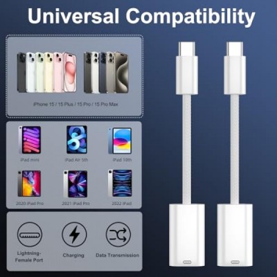 for Lightning to USB C Charging Adapter, 2 Pack USB C Male for Lightning Female Connector Aadapter for iPhone 15 Pro/Max iPad Pro Air/iPad 10 and More Type C Devices PD Fast Charging