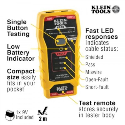 Klein Tools VDV026-813 RJ45 Ethernet Cable Tester and Crimper Kit, Pass-Thru Technology, Includes Connectors for Cat5e / CAT6 Data Applications, Pack of 50