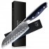 FANTECK 산토쿠 칼 5인치 다마스커스 일본 강철 주방 칼, VG10 67층 고탄소 풀 탱 프로 셰프 및 레스토랑용 최고의 요리사 산토쿠 칼, 블루 G10 손잡이, 선물 상자 및 칼집
