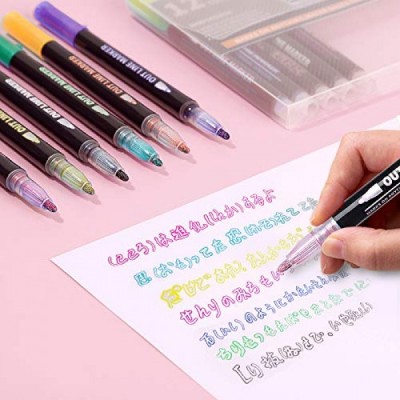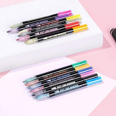 KINGMAS 12 Colors Outline Metallic Markers Pens, Squiggles Double Line Pen, Glitter Drawing Pens for Christmas Greeting Cards, Craft, Painting, DIY Sketching