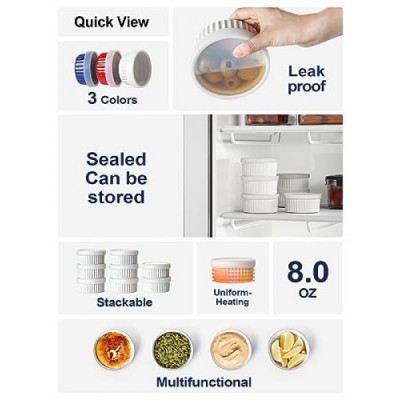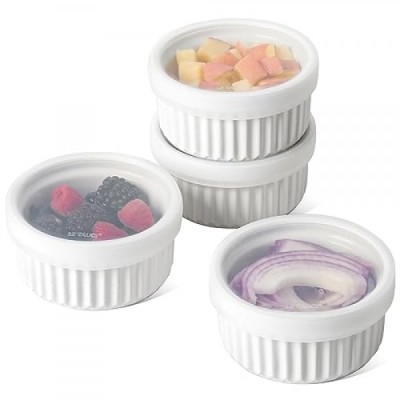 LE TAUCI Ramekins with Lids, [2nd Gen] 8 oz Oven Safe Creme Brulee Ramekin Souffle Dishes with Covers, Stackable Ceramic Bowls for Baking, Pudding, Serving Dip, Custard, Ice Cream, Set of 4, White