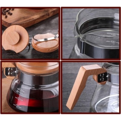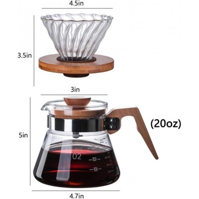 DUEBEL 나무 손잡이가 있는 커피 메이커, 20oz 높은 붕규산 유리 커피 포트, 핸드 드립 공유 포트 필터 깔때기 베이스가 있는 휴대용 커피 메이커 용품