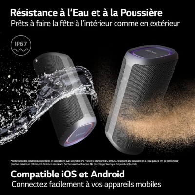 LG XBOOM Go XG7QBK Kabelloser Lautsprecher, Bluetooth, 40 W, Sound Boost, wasserdicht IP67, Betriebsdauer 24 Stunden, Variable LED-Lichtfarbe, breite Konnektivität, Anthrazit