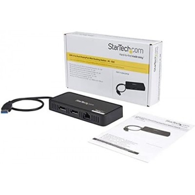 StarTech.com USB 3.0 Mini Dock - DisplayPort 4K 60Hz 비디오 및 기가비트 이더넷을 지원하는 듀얼 모니터 USB-A 도킹 스테이션 - 1ft(30cm) 케이블 - 휴대용 USB 3.1 Gen 1 Type-A 노트북 어댑