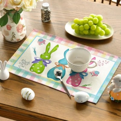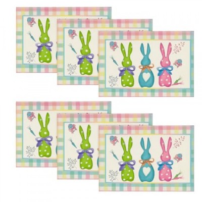 Artoid 모드 그린 블루 핑크 버팔로 격자 무늬 토끼 행복한 부활절 Placemats 파티 주방 식사 장식을위한 6, 12x18 인치 스프링 테이블 매트 세트