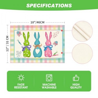 Artoid Mode Green Blue Pink Buffalo Plaid Bunny Happy Easter Placemats Set of 6, 12x18 Inch Spring Table Mats for Party Kitchen Dining Decoration