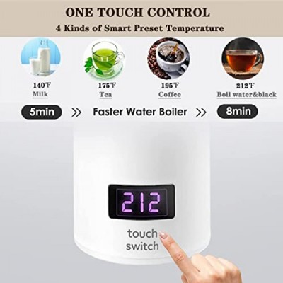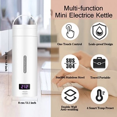 Travel Electric Kettle Small Portable Electric Kettle, 380ML Mini Tea Kettle with 4 Variable Presets, 304 Stainless Steel Travel Water Boiler, Auto Shut-Off & Boil Dry Protection, BPA Free(White)
