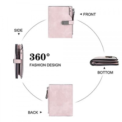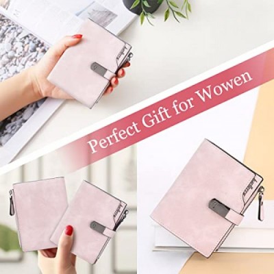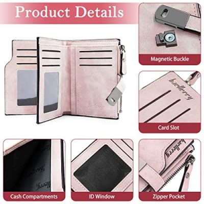 HNOOM 여성용 지갑, PU 가죽 지갑, 여성용 소형 및 짧은 형식 지갑, 여성용 많은 수납 공간, 16개의 카드 슬롯과 동전 수납 공간이 있는 미니 지갑, Pink-S, 미니멀리스트