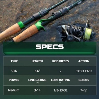 Magic Soul Fishing Rod, Fuji A-Ring Guides, 2-Piece BFS Spinning and Casting Rod, Toray 30 Ton+36 Ton Carbon Fiber Blank, Cork+Carbon Split Grip Handle, for Bass, Crappie, Walleye Etc.