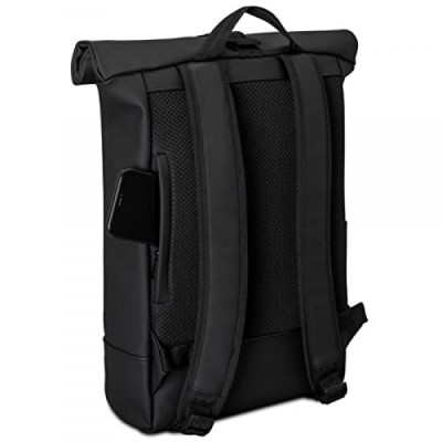 Johnny Urban Backpack 여성 및 남성 - Harvey - Uni Business City용 노트북 수납 공간이 있는 롤탑 - 15L - 무광 PU 코팅 - 방수 블랙