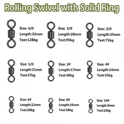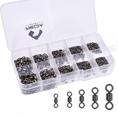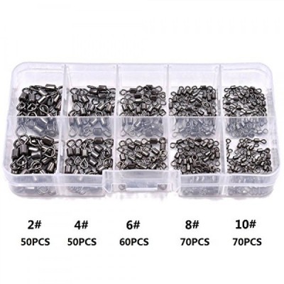 Phad Fishing Box of 300 Small Size Fishing Rolling Swivel Fishing Connector Size 2 #, 10 # for Fresh and Saltwater