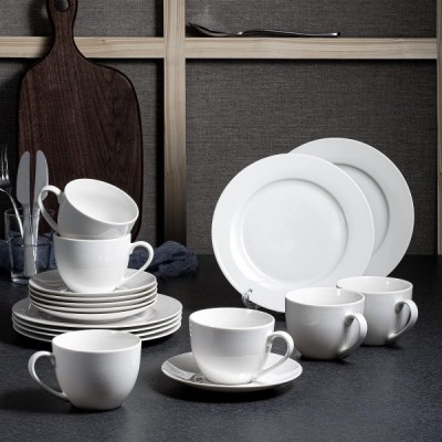Coffee Service 모던 6인용 크림 화이트, 280 ml, 18피스 커피 식기 케이크 플레이트 커피 컵 세트, 소서 포함, 신툰스 식기 세트, 확장형, 일상생활, 조식 티 서비스, 선물