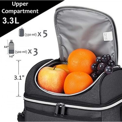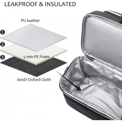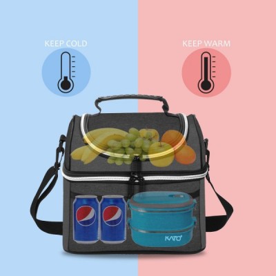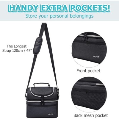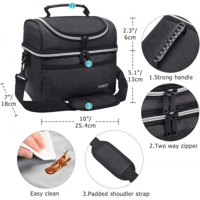 Kato Tirrinia 여성용 및 남성용 절연 도시락 가방 학교 및 작업용 누출 방지 열 도시락 쿨러 가방 숄더 스트랩 및 전면 포켓이 있는 이중 구획 옥스포드 천 블랙 10L 블랙