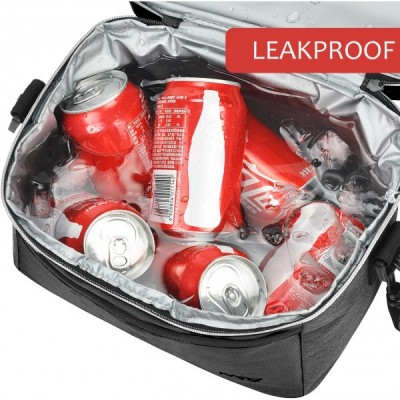Kato Tirrinia Isolierte Lunchtasche für Damen und Herren auslaufsichere Thermo-Bento-Kühltasche für Schule und Arbeit Doppelfach mit Schultergurt und Vordertasche Oxford-Stoff Schwarz 10L Schwarz-kühltasche