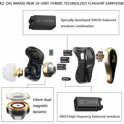 KZ ZAS 인이어 모니터, 강력한 저음, 케이블 포함 인이어 헤드폰, 16개의 사운드 드라이브 유닛, 스튜디오용 HiFi 스테레오 헤드셋, 팟캐스트, 모니터, 휴대폰, PC, MP3/4(블