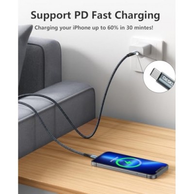 iPhone 케이블 고속 충전 6피트 USB C 번개 케이블 3팩 6피트 나일론 편조 유형 C iPhone 코드 iPhone 14 13 12 11 Pro Max Mini 8 Plus SE iPad 등과 호환 가능