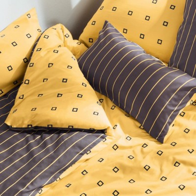 Erwin Müller Satin-Bettwäsche, Wendebettwäsche, 100% Baumwolle gelb-anthrazit Größe 135x200 cm (80x80 cm) - atmungsaktiv, temparaturausgleichend, mit Reißverschluss (weitere Farben, Größen) 135x200 cm (80x80 cm)