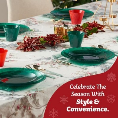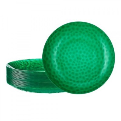 PLASTICPRO 30 Pack Hammered Plastic Plates Heavyweight Disposable Plastic Plates Elegant Transparent Green Hammered Platsic Party Dishes (Hammered green Christmass, 9'' INCH PLATES)