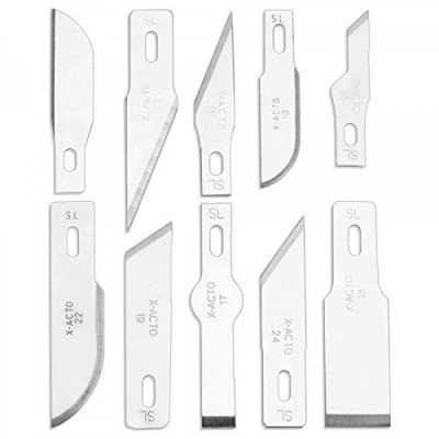 포함된 구성 요소: 3개의 X-ACTO 칼날(#1, #2, #5), 13개의 X-ACTO 칼날[#1, 2(2), 5, 7, 10, 11, 16, 17, 18, 19, 22 및 24], 나일론 소프트 압축케이스, 사용설명서